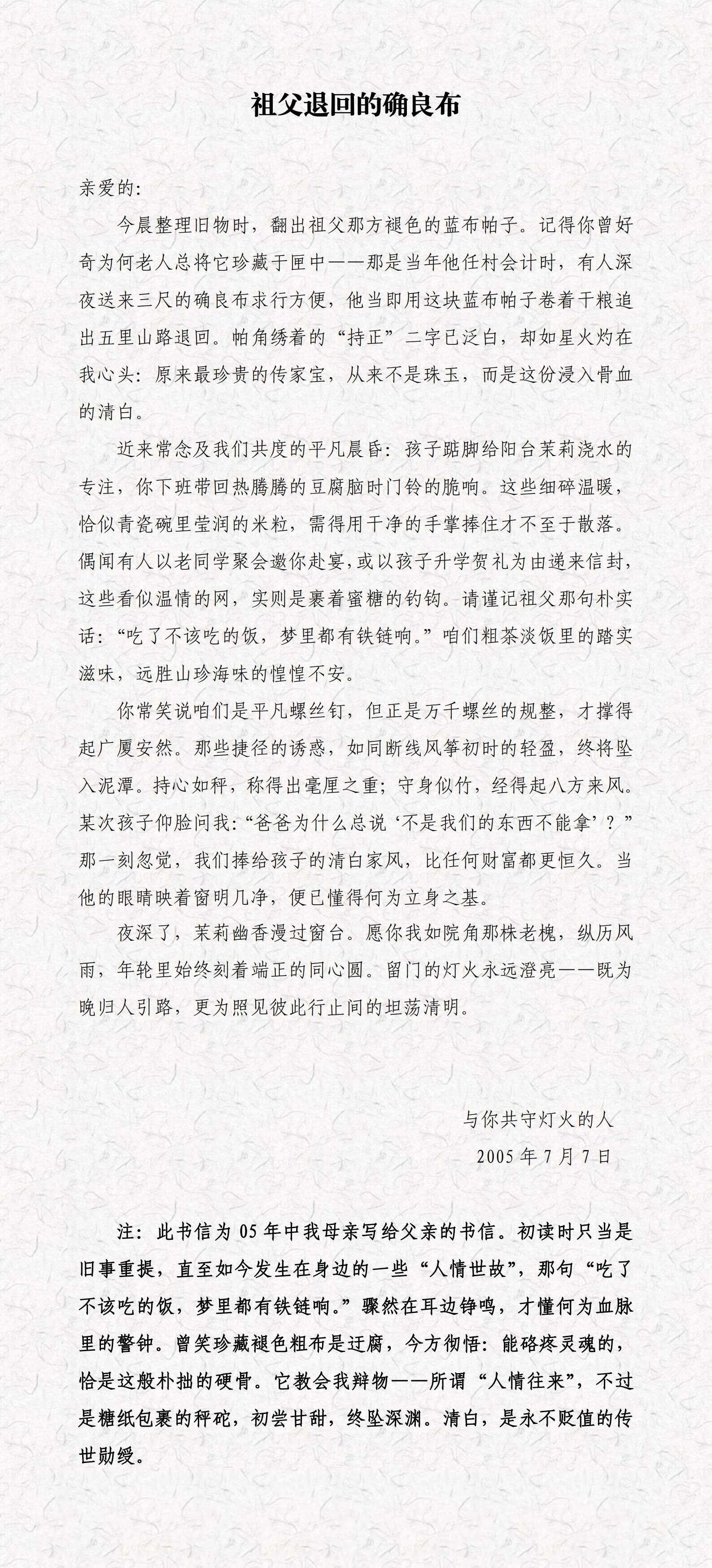 纸短情长,言简意深。一封封家书承载着深情,寄托了期盼。