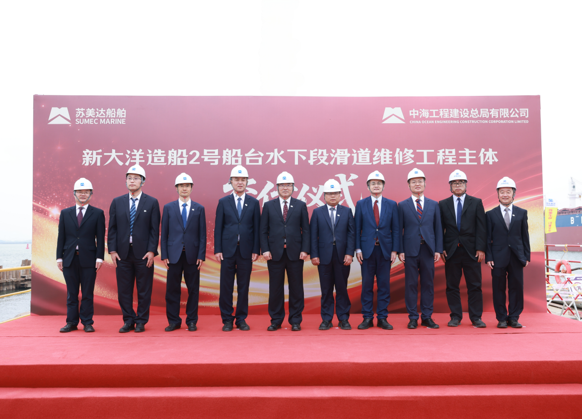 4月16日,国机集团内部协同重点项目——新大洋造船有限公司2号船台水下段滑道维修工程主体交付暨授牌仪式在扬州举行。国机集团党委书记、董事长张晓仑及相关领导出席仪式。