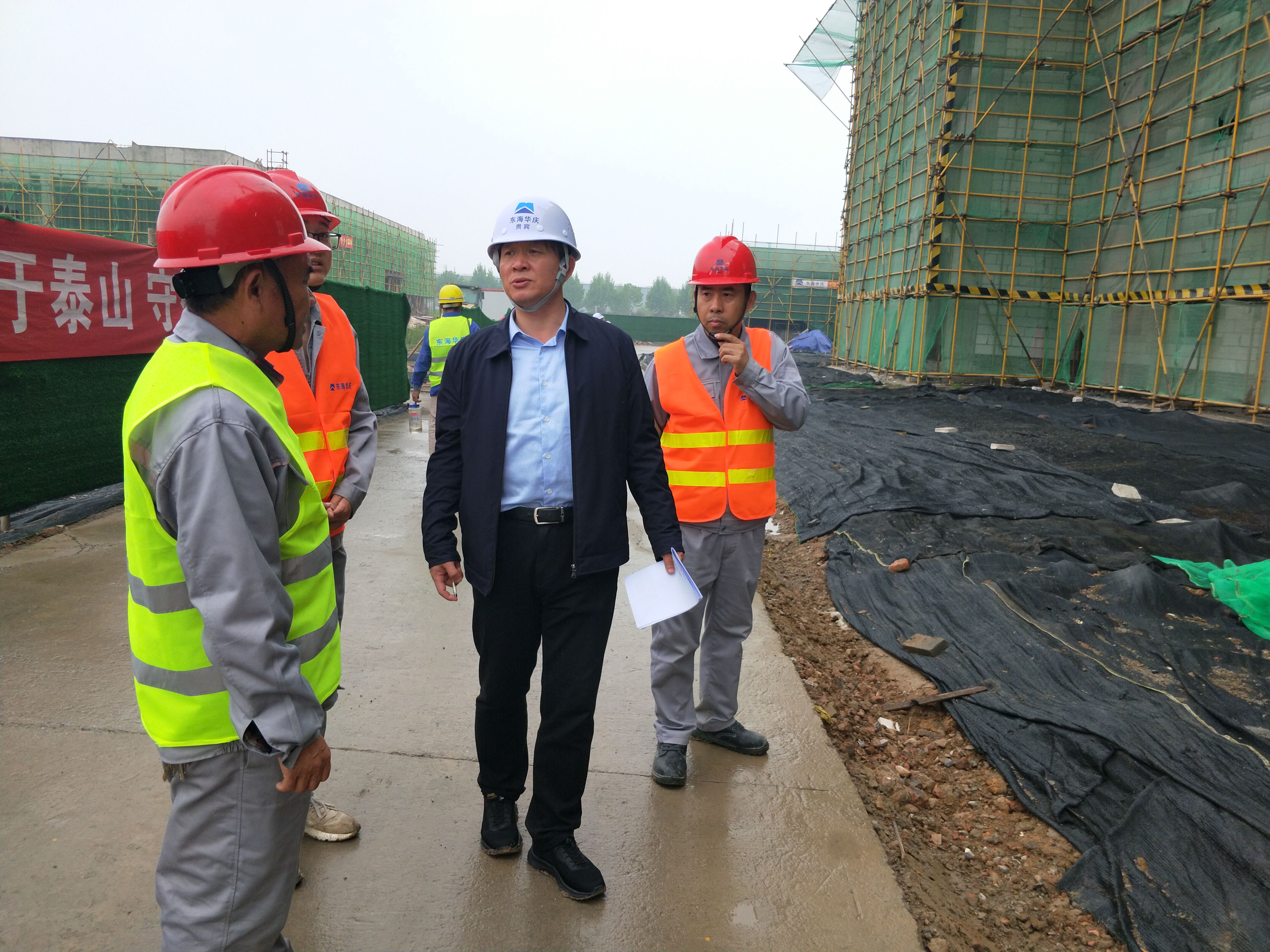 项目经理吴功福首先向检查组汇报了项目情况及安全工作开展情况,随后检查组深入到项目的各个施工区域,对一体化建设、施工临时用电、起重机械、脚手架、高空作业以及文明施工等方面进行了检查指导,并对项目安全资料和台账进行了检查。检查组对今辰产业园项目在安全管理和施工组织中作出的成绩表示认可,指出本工程存在风险点及危险源较多的特点,但项目部始终保持着严谨细致的工作态度,充分体现出东海华庆“安全是关键、安全是效益”的管理理念。