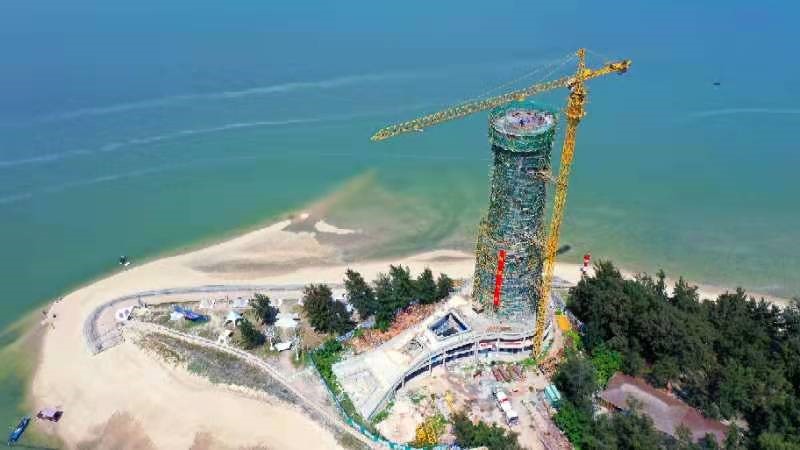 银滩灯塔位于广西北海金海湾红树林景区内,灯塔参照了“铜凤灯”的外观进行造型设计,塔身高达67.80米。项目施工内容包括灯塔基础、主体结构及配套设施,目前灯塔已完成主体结构封顶,预计年底交付使用。灯塔建成后将是广西北部湾地区的第一座大型灯塔,也是我国第一高航标灯塔,它将成为船舶进出北海港和铁山港的重要助导航标志。