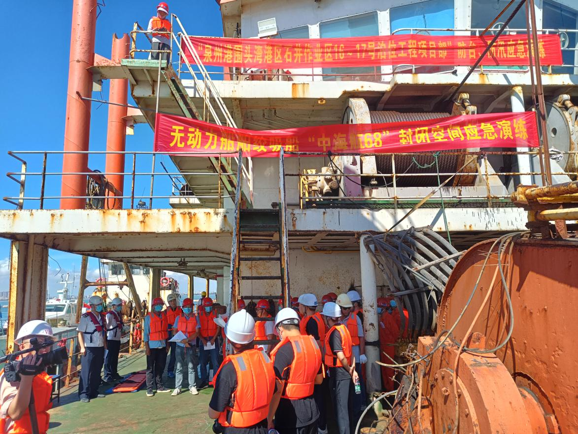 以演练促实战保安全——厦门分局泉州港石井 16-17#泊位工程组织开展“中海航68” 绞吸船综合应急演练