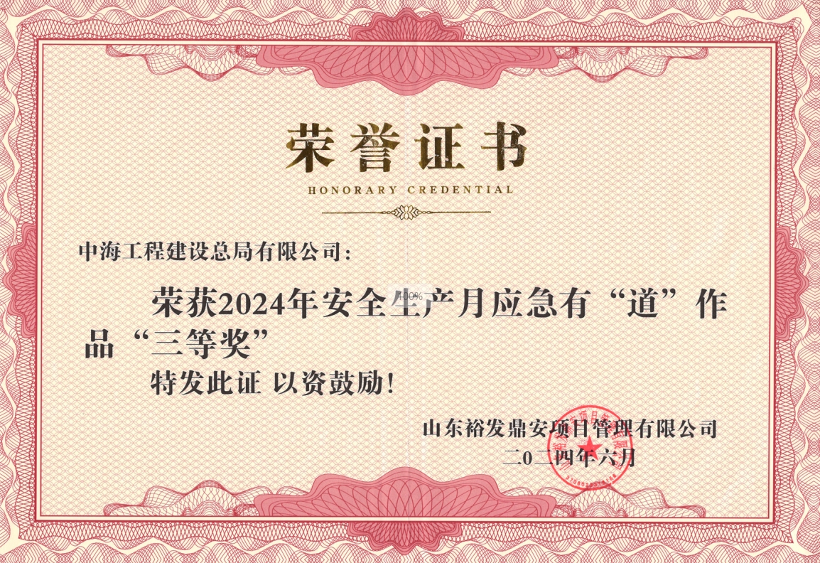 近日,中海总局青岛分局山东裕龙石化产业园片区综合开发项目环岛路及岸线防护设施(环岛路和防浪堤)EPC工程项目部被甲方单位授予“HSE管理优胜单位”流动红旗,并在建设单位组织的“应急有‘道’”作品创意大赛中荣获三等奖。