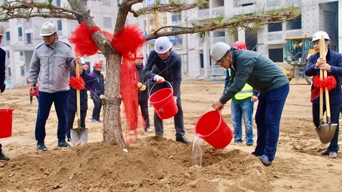 2021年3月12日,总局雄安新区容东片区D2组团安置房及配套设施项目园林景观及小市政工程三标段项目部召开“绿意盎然,春风满园”植树活动暨景观开工大会。