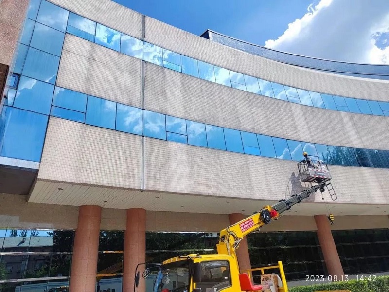 进入“三伏天”,北京开启“闷蒸”模式。为防止主楼外墙 空鼓饰面层高空坠物,中央广播电视总台复兴门办公区零星维修 项目的施工人员在烈日下对主楼外立面进行加固修补。(北京公司)