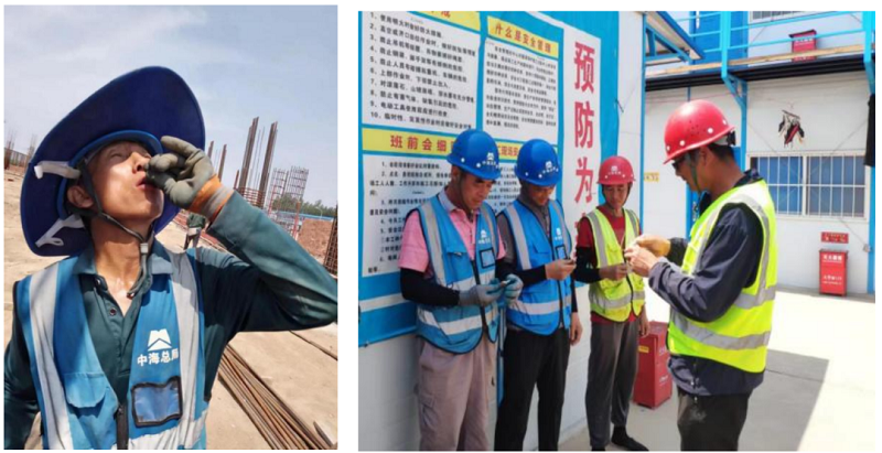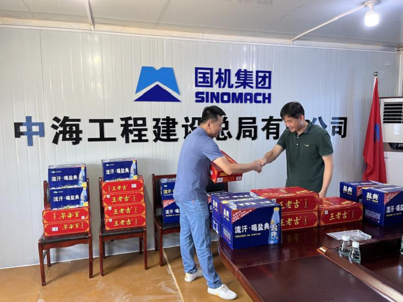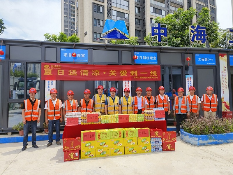 烈日无情人有情,丝丝关怀沁人心。中海总局各级企业、 项目部多措并举,积极落实防暑降温举措,组织开展“送清 凉”慰问,为现场人员购买防暑降温物质,保障一线人员的 健康安全,确保施工进度顺利推进。