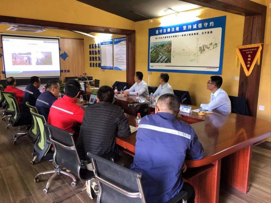 在调研会上,霍明明听取了项目部关于项目开展情况、重点难点问题及下一步施工计划的汇报,对项目现阶段工作成果给予了充分肯定,同时提出五点工作要求:一是安全生产重于泰山,项目部要以高度的责任感和使命感继续抓好安全生产工作;二是继续严格落实安全文明施工措施,把住建部“六个百分百”落到实处;三是利用管理优势和团队资源,继续做好做强水工业务,锚定目标,加压奋进,全力打造国机工程水工品牌;四是以长天路隧道项目为契机,打造中海总局市政工程名片,争取市场开发的机会;五是加强安全管理和风险防控,正确权衡风险,适时把握机遇;以更高标准和要求全力完成项目建设任务。