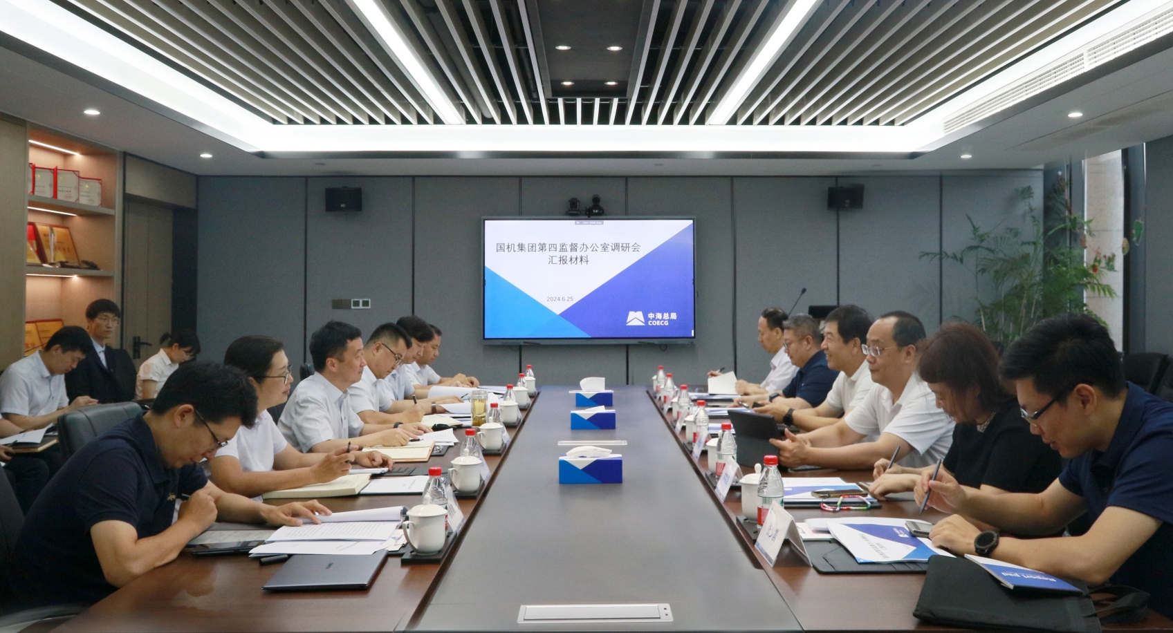 6月25日,国机集团第四监督办公室主任宋志明一行至中海总局开展调研,副主任张光远,处长乔英白、张少晨,国机工程集团综合管理部总经理李岩、审计部总经理林常洁陪同调研,中海总局党委书记、董事长李一平主持会议。