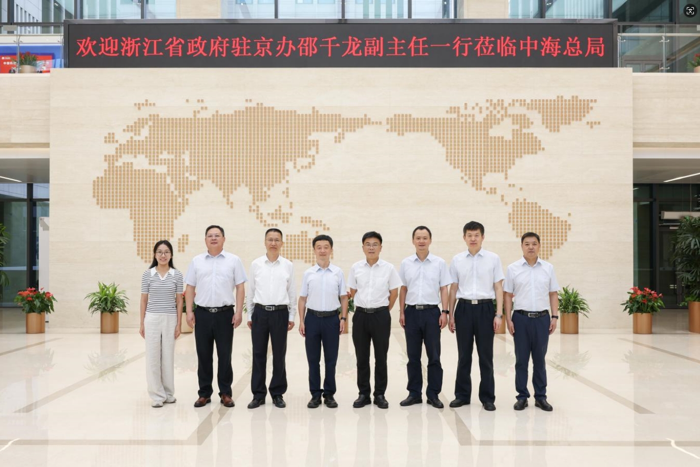 7月31日,浙江省人民政府驻北京办事处党组成员、副主任邵千龙一行到访中海总局,中海总局党委书记、董事长李一平等领导陪同考察。