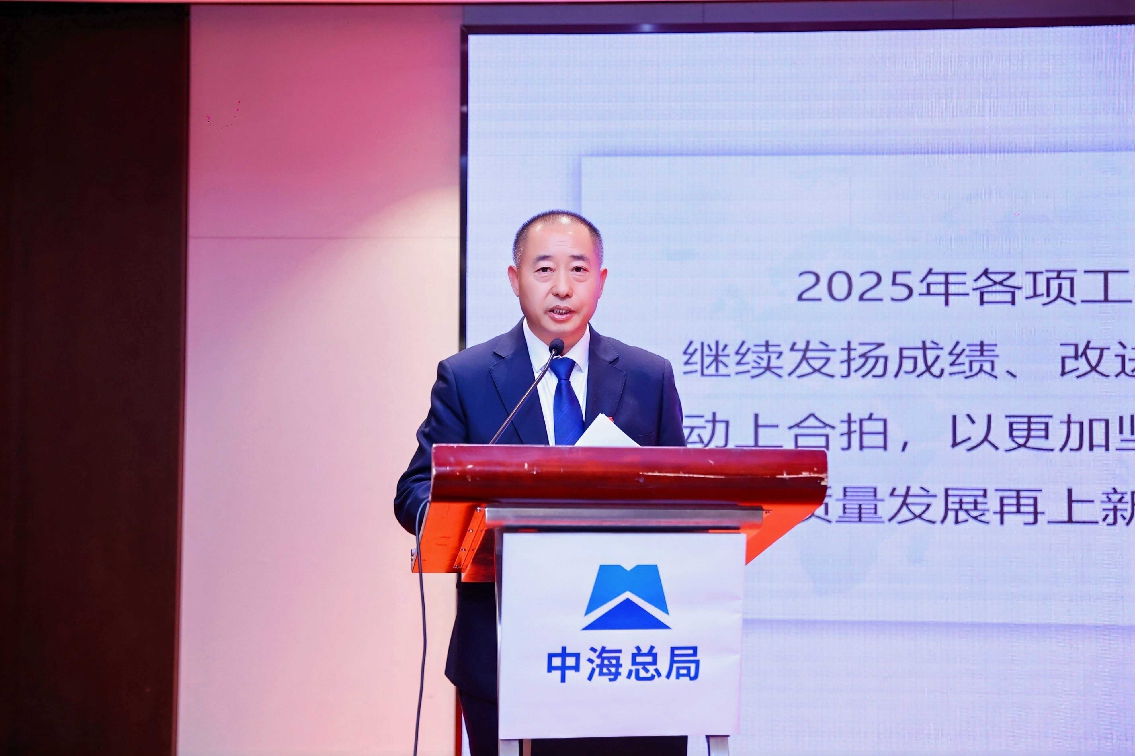 中海总局党委书记、董事长李一平作题为《同心聚力越关山,矢志奋斗开新元,奋楫开启“十五五”跨越发展的新征程》的总结讲话。