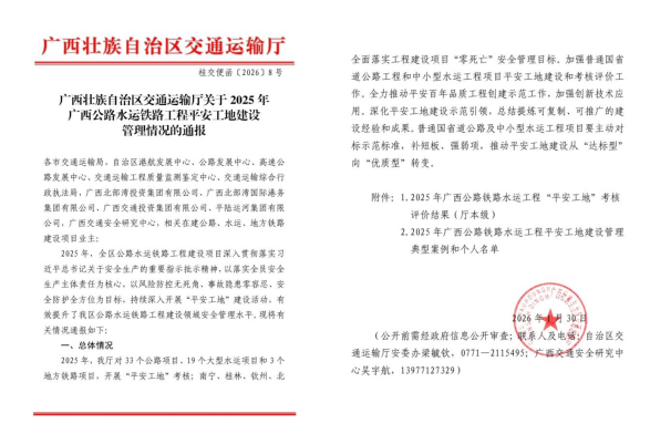 喜报丨桂江航道工程(马江至莲花大桥段)航标工程(№5标段)获评2025年广西公路铁路水运工程 平安工地建设管理典型案例