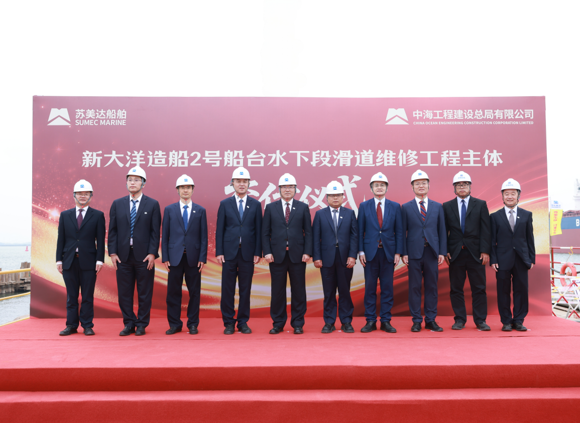 4月16日,国机集团内部协同重点项目——新大洋造船有限公司2号船台水下段滑道维修工程主体交付暨授牌仪式在扬州举行。国机集团党委书记、董事长张晓仑及相关领导出席仪式。